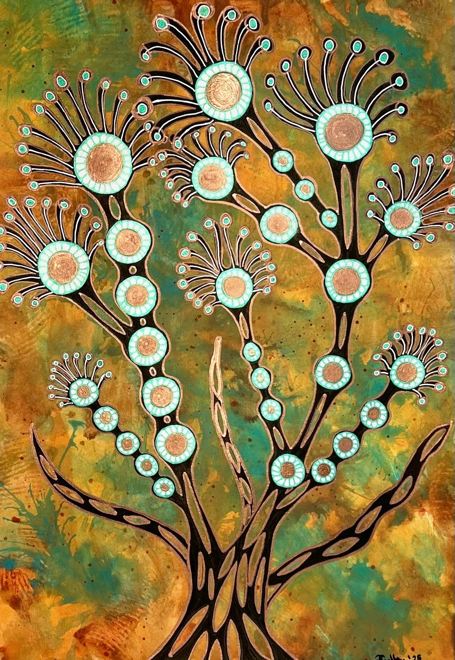 This one arrived with a lot of energy - felt almost celebratory as I was drawing it. I see it as kind of a mystical tree, with branches that pulse or hum with their own rhythm. There's something joyful and ancient about it... like it knows exactly what it is, even if I don't.
