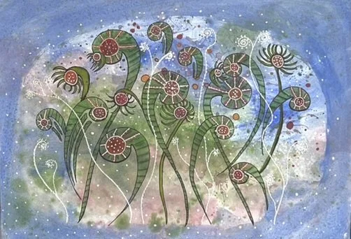 This one felt like a dream space. I imagined these otherworldly plants slowly waking up and stretching to the stars. There's something soft and curious about them - like they're in a whispered conversation with each other and the sky. It's definitely a garden... but not from here.