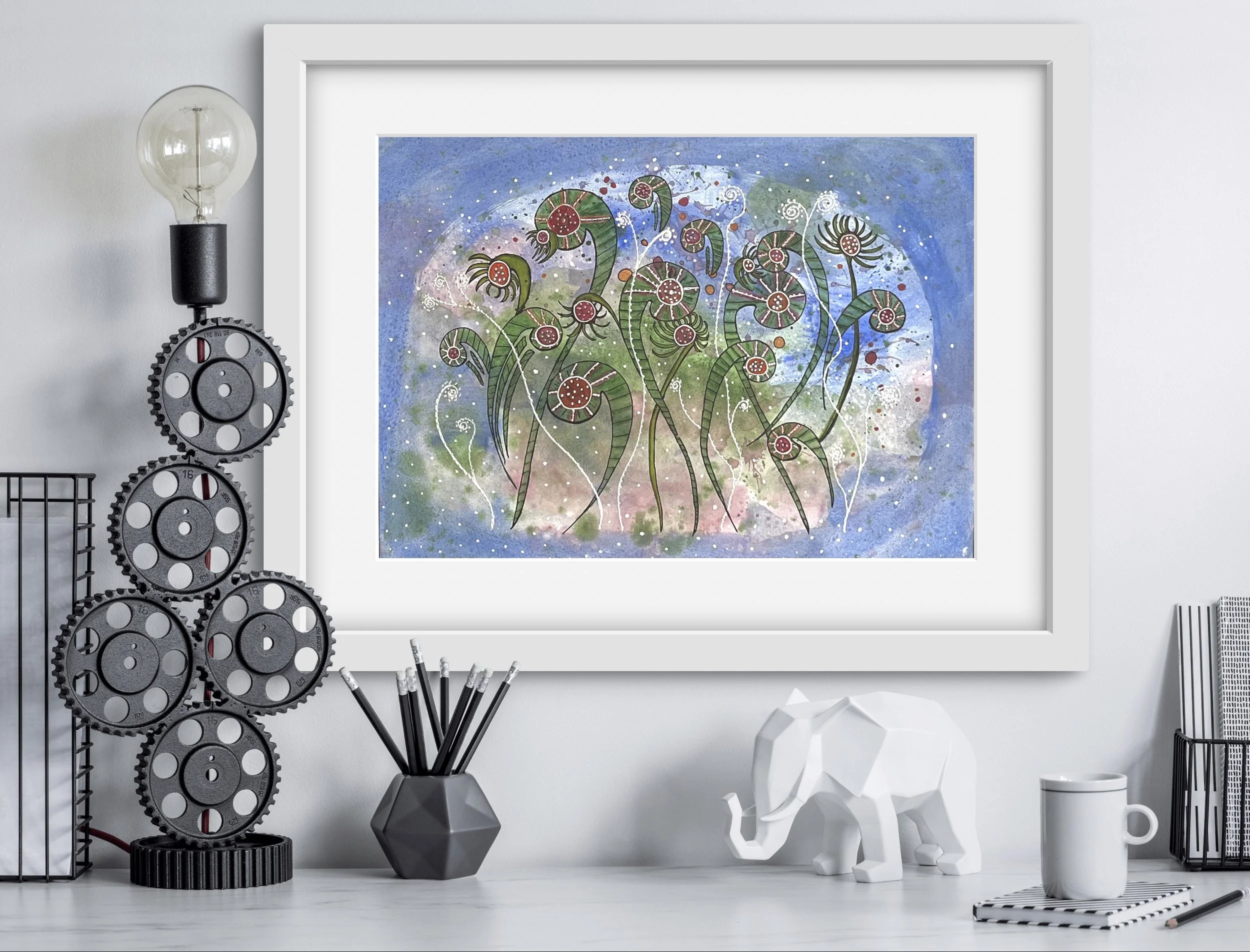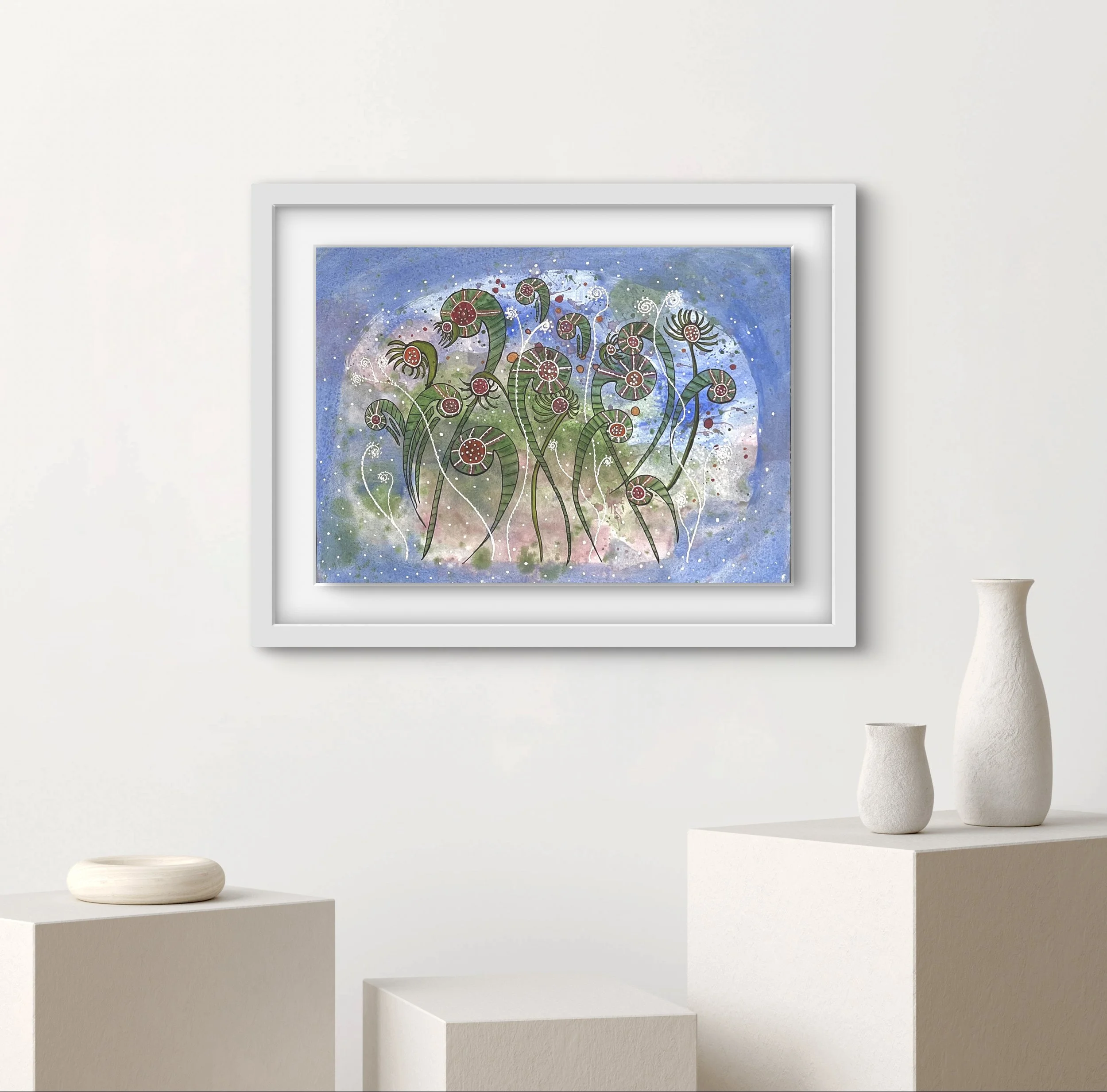Original artwork on A3 (42 x 29.7 cm / 16.5 x 11.7 in). Watercolour and mixed media on 300gsm archival cotton paper.