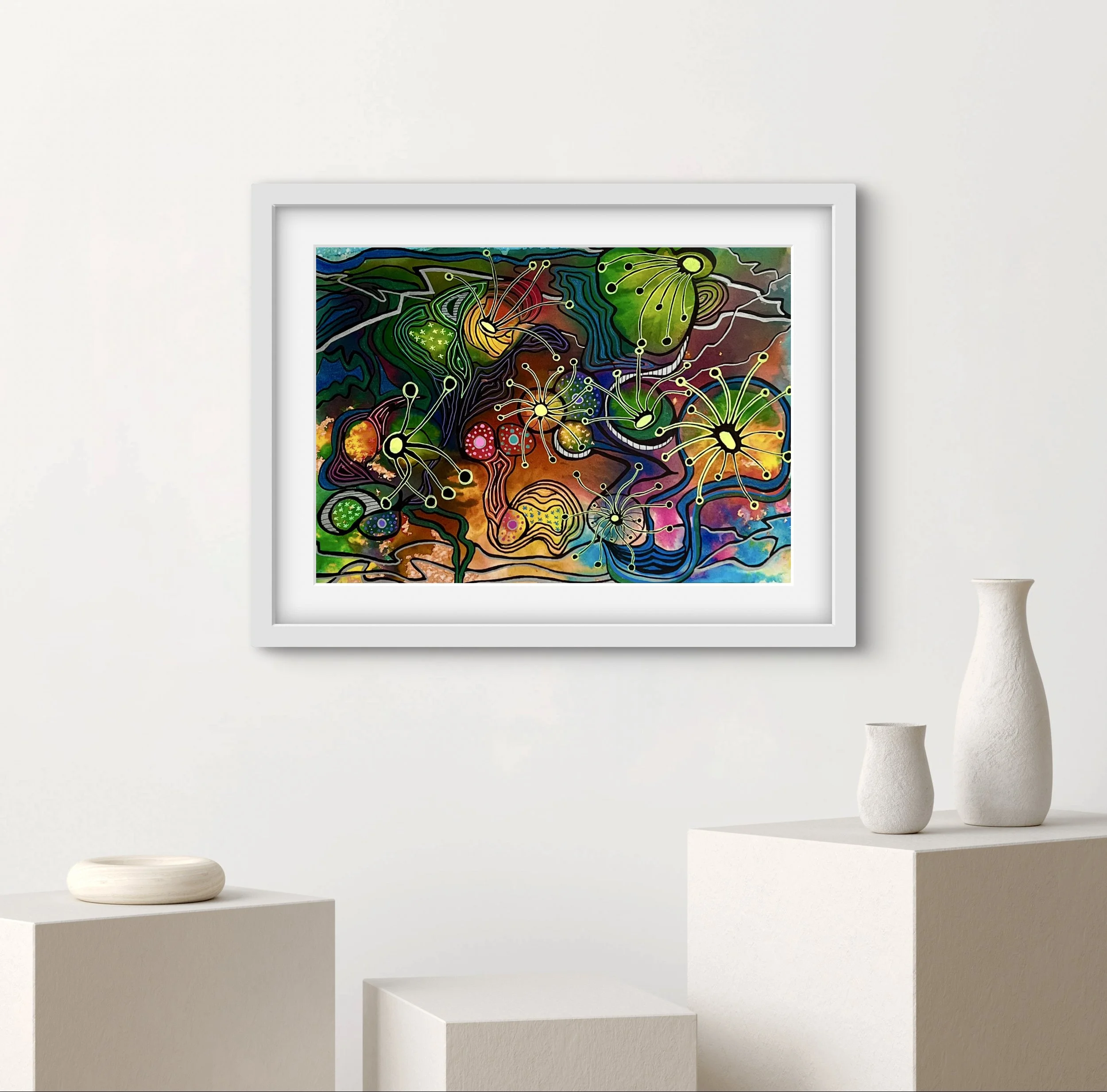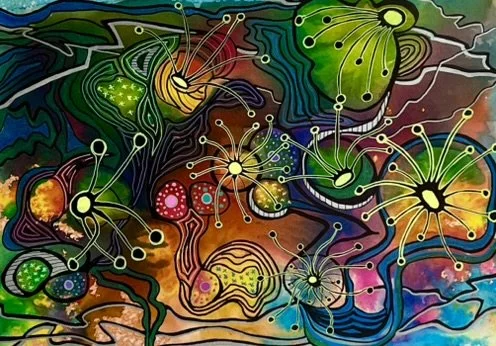 This piece came through loud and full of energy - like a celebration of life in all its weird, colourful, and wonderful forms. Everything feels like it's buzzing, glowing, or about to burst open. It reminds me of a garden that's alive in a different frequency... wild, joyful and definitely not quiet.
