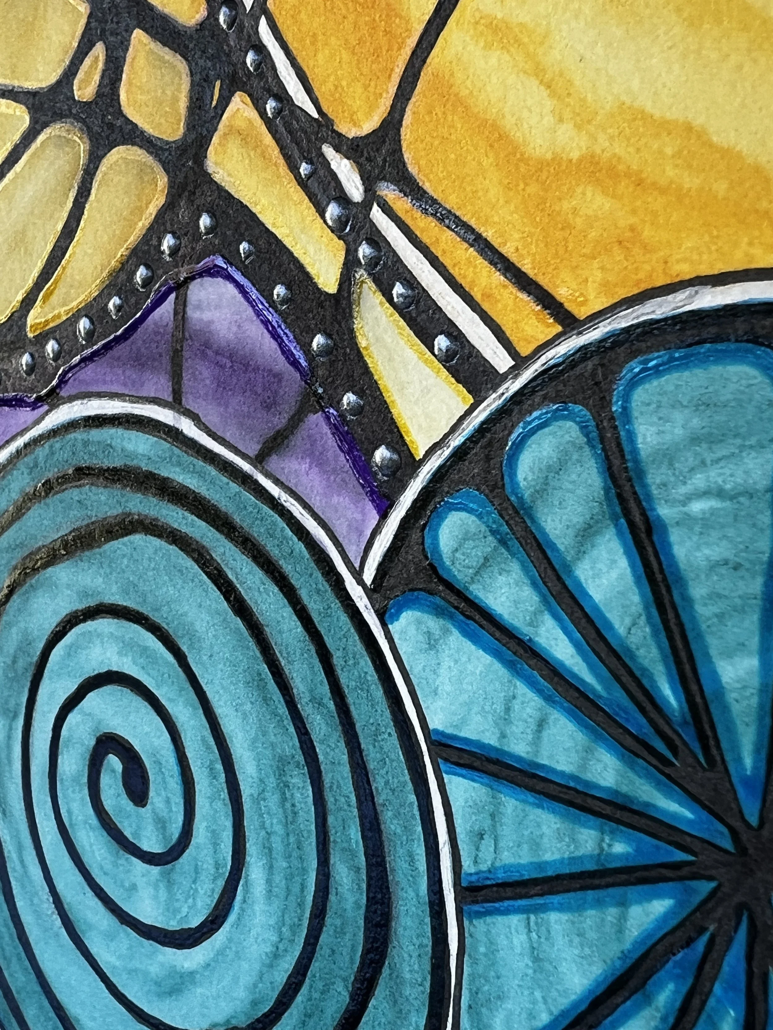 This piece was born from the quiet aftermath of a creative storm—when the fog of doubt finally lifted, and I could see, really see, what had always been there. At first, it was simple: gratitude for the return of my creativity. But as I kept drawing, that gratitude deepened—stretching into every part of my being. The bright spirals and flowing patterns are a visual thank-you, not just to art, but to life, to resilience, to remembering who I am.