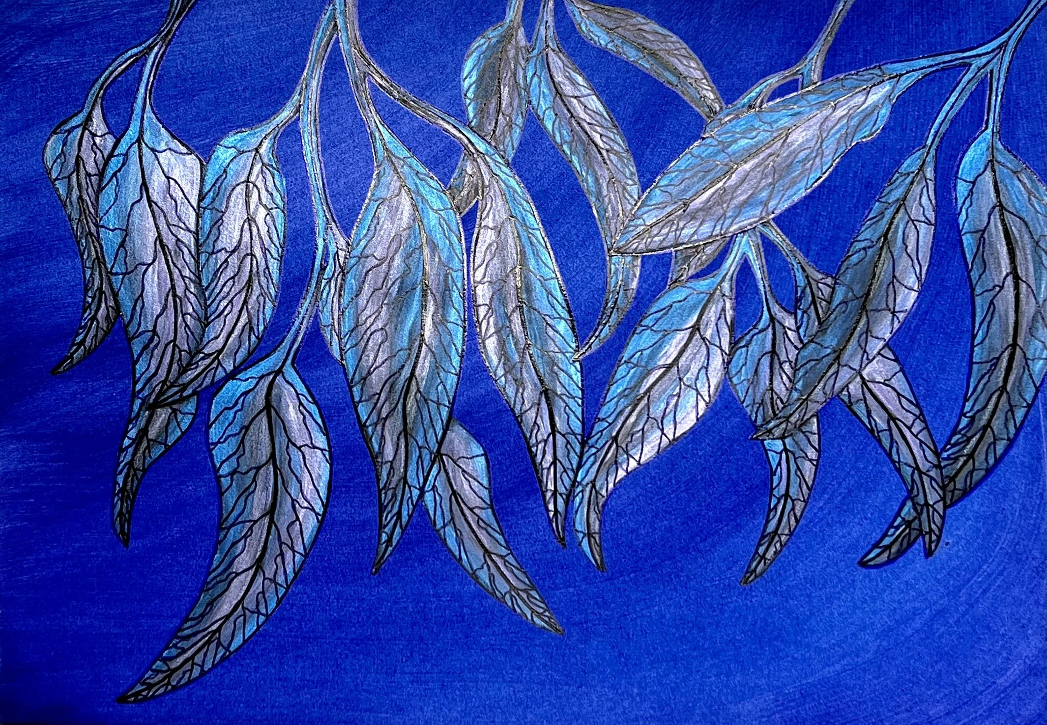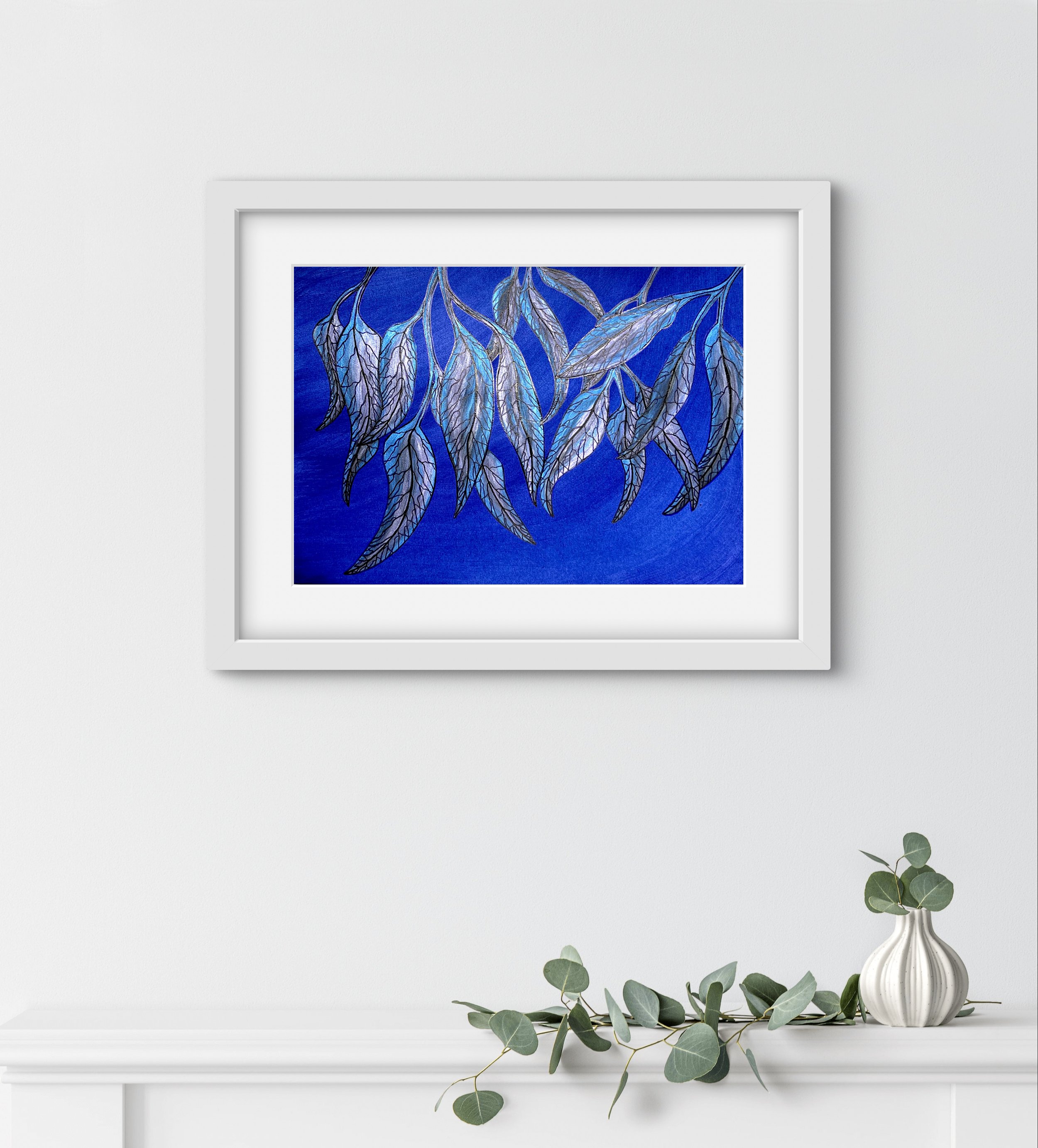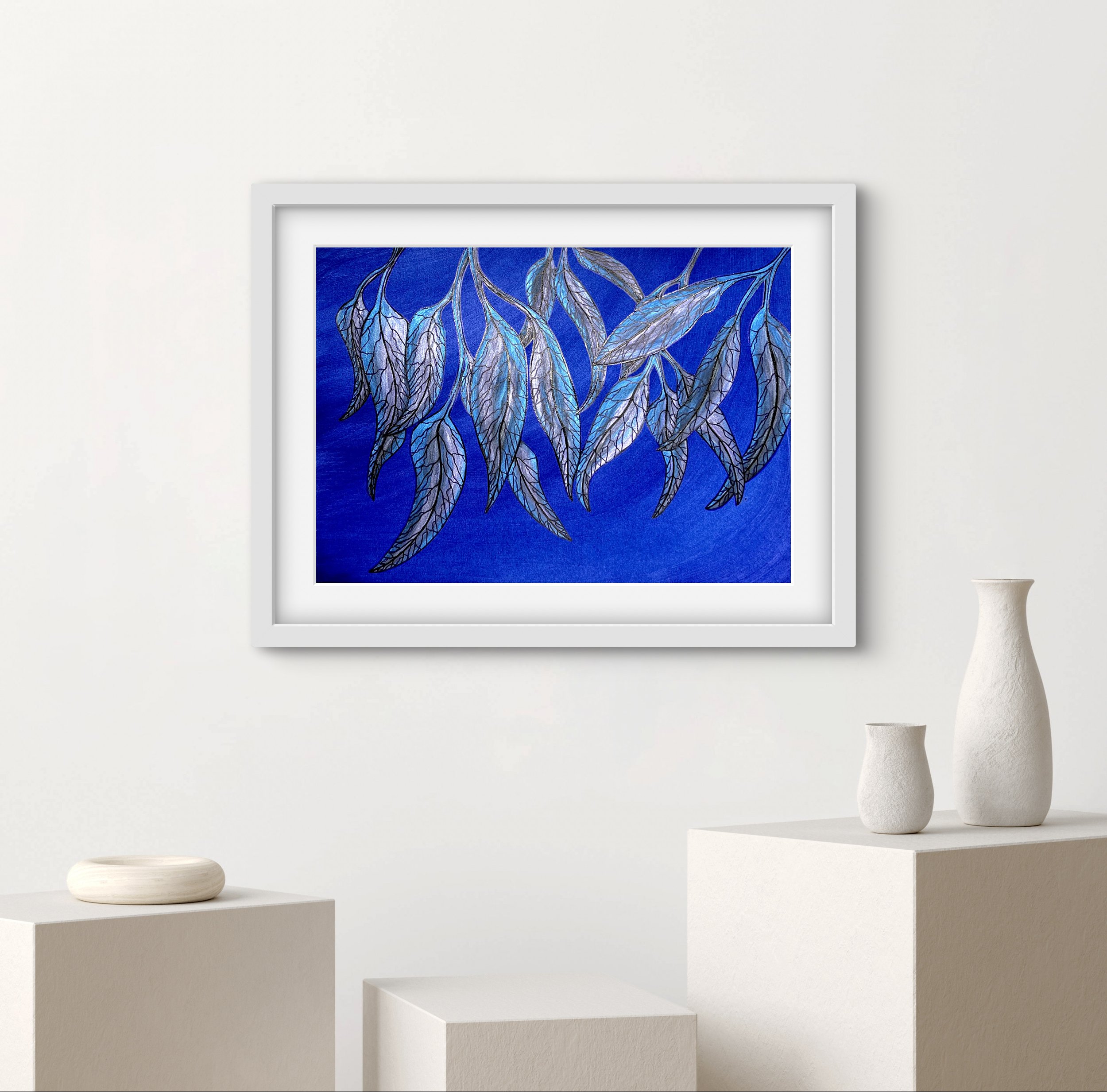 Indigo Sky closes the quartet with the quiet drama of dusk — deep, contemplative, and just a touch mysterious. The leaves seem almost weightless against the rich blue, like they’ve surrendered to stillness. There’s a kind of gentle power in this one, like the hush before a storm or the exhale after clarity. Same composition, but this one hums in a lower, more soulful key.