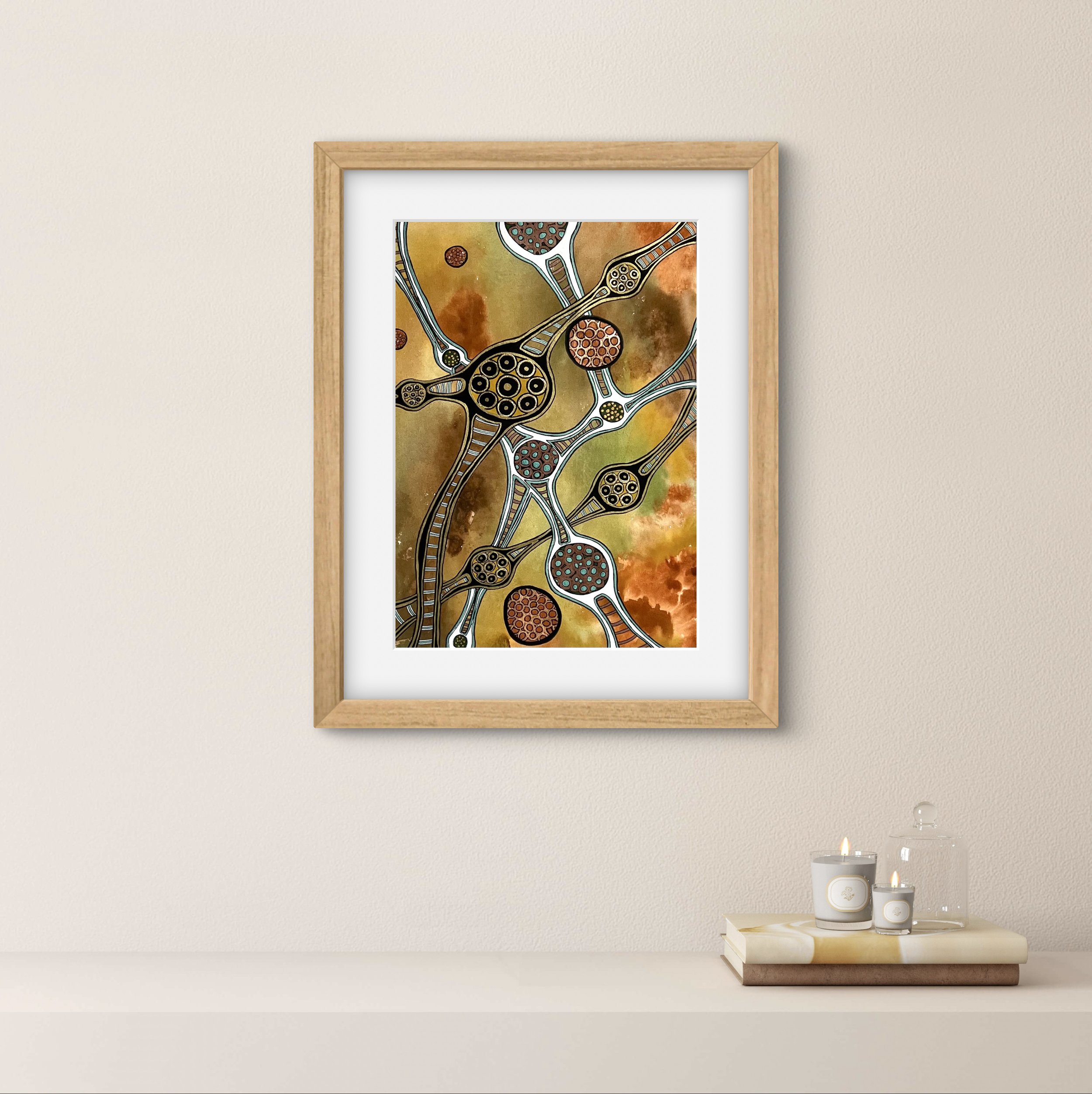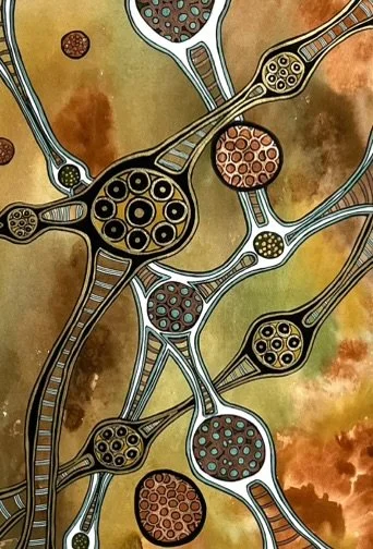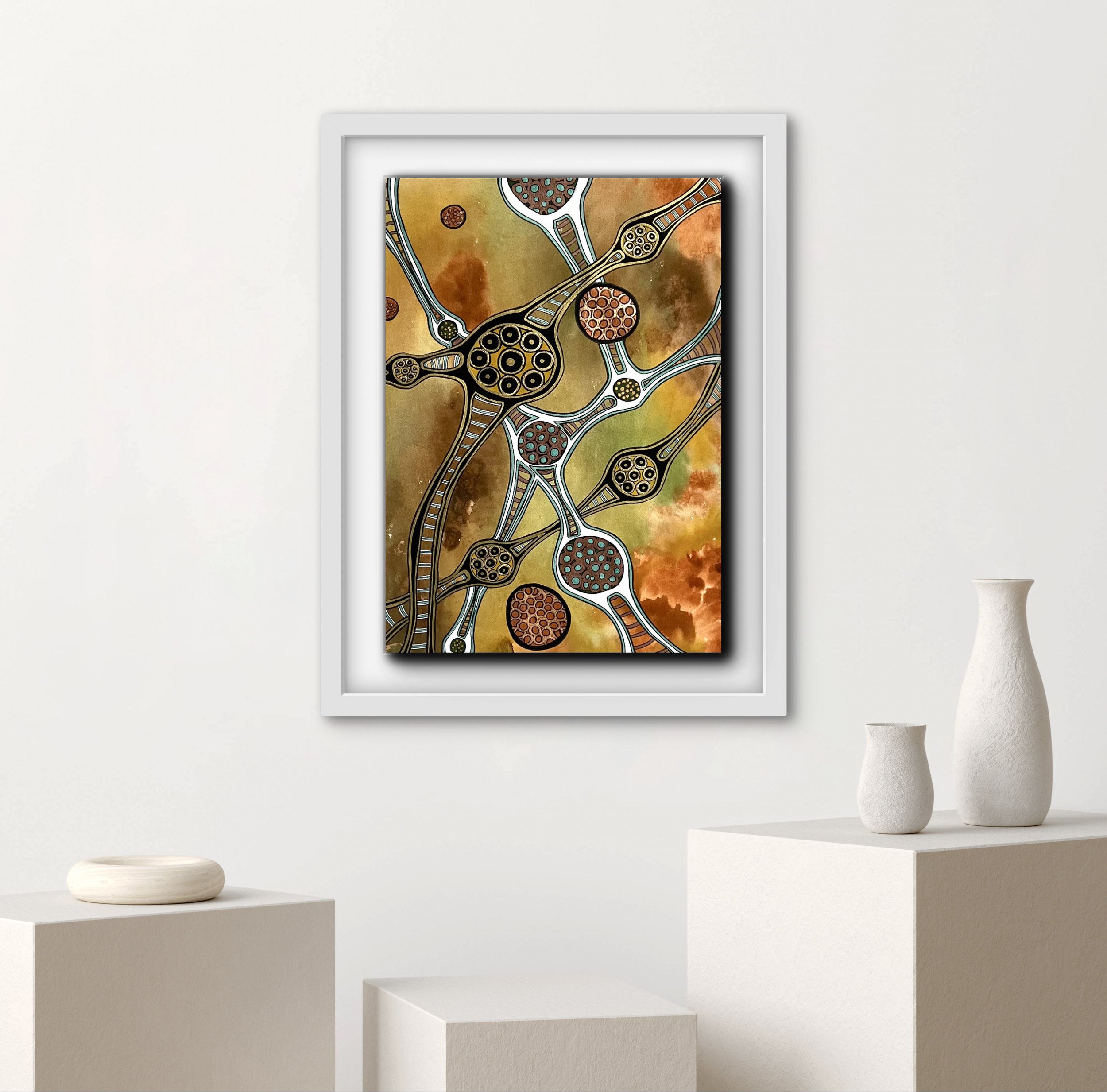 This piece reminded me of a kind of biological map—like I was looking at connections or signals being passed between tiny living structures. There’s something very organised about it, but also very alive. It felt like I was catching a system in mid-conversation—full of purpose, but just out of reach of our usual understanding.