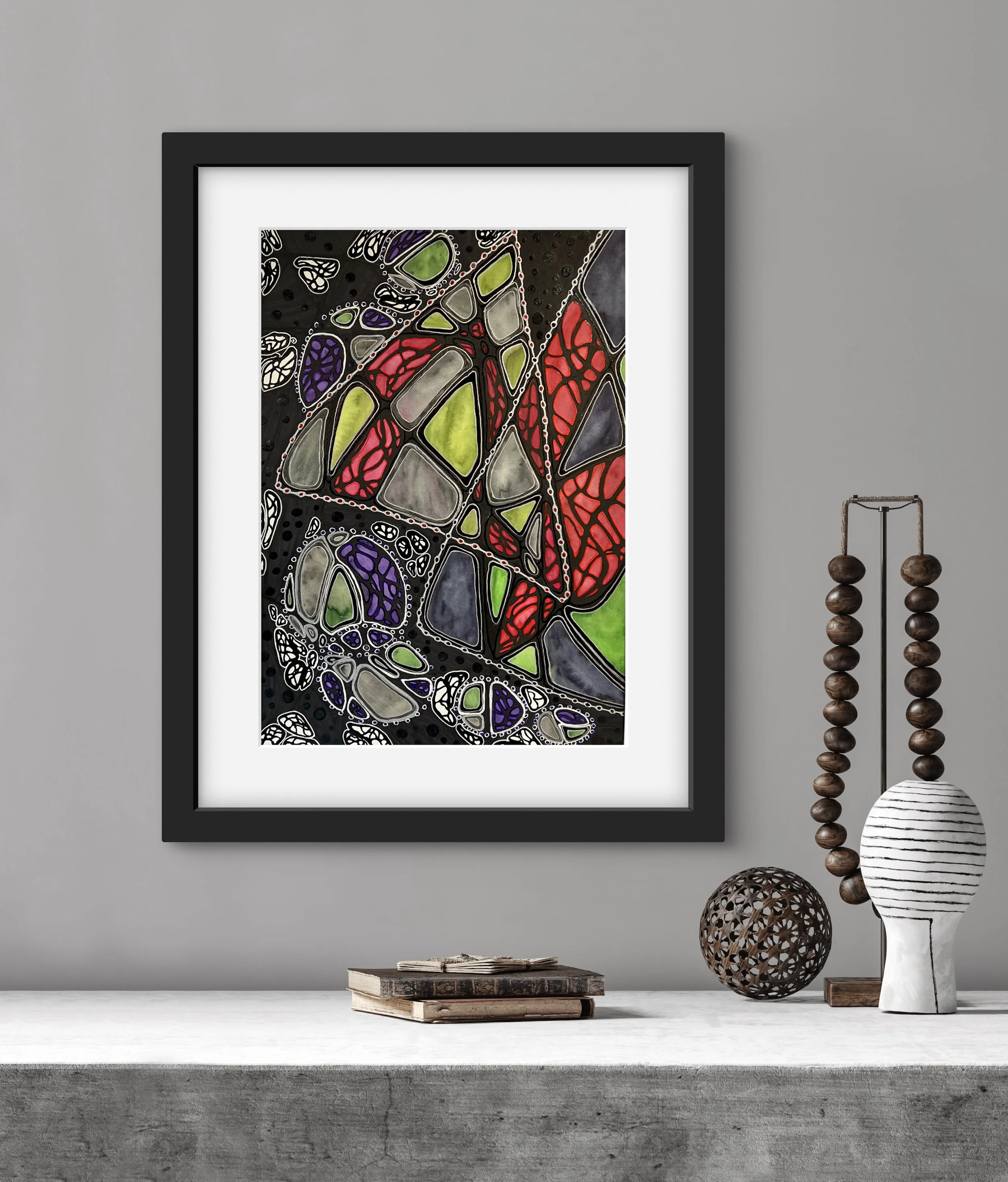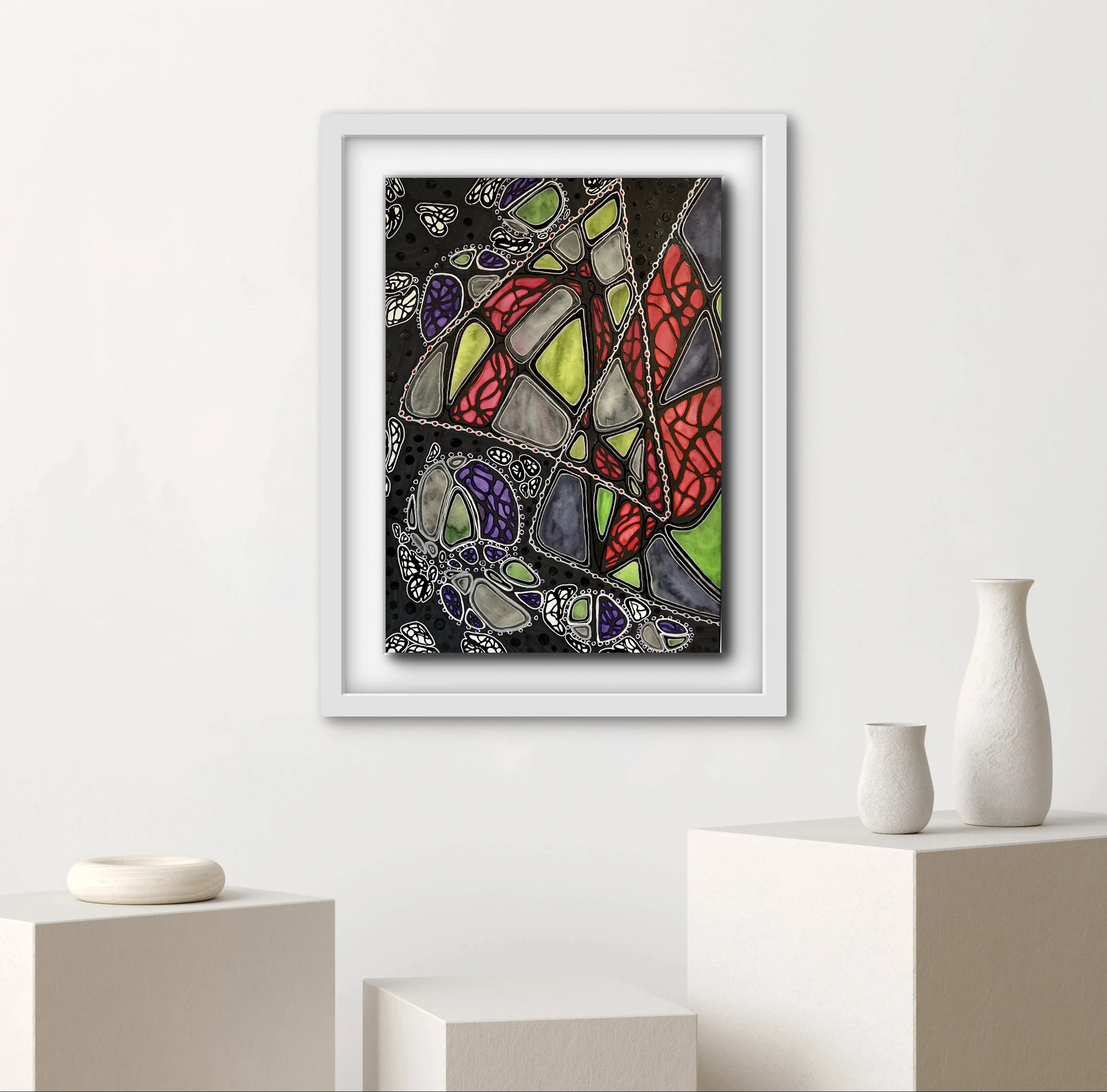 This is the first of my “Shadow” drawings—born from a stretch of creative stillness that felt more like entrapment than rest. The triangles symbolise how my creative energy felt at the time: confined, restricted, pulled inward. Around them, the circular shapes represent the untamed flow I longed to return to. There was no concern for aesthetics here—just a need to give form to the block. In doing so, the block began to shift.